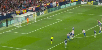 第50分钟,阿尔瓦雷斯操刀主罚定位球,绕过人墙直奔右上角,稍稍偏离目标,皮球打在边网上,吓出拉亚一身冷汗。