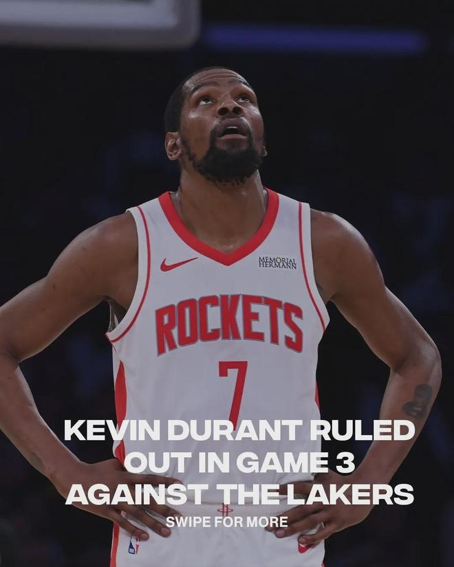 因为杜兰特的伤病情况,也许火箭难逃被湖人横扫的命运,目前0-2大比分落后。