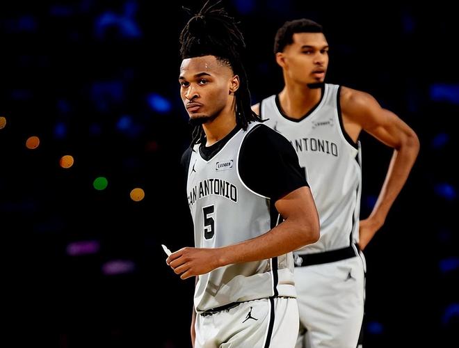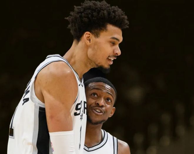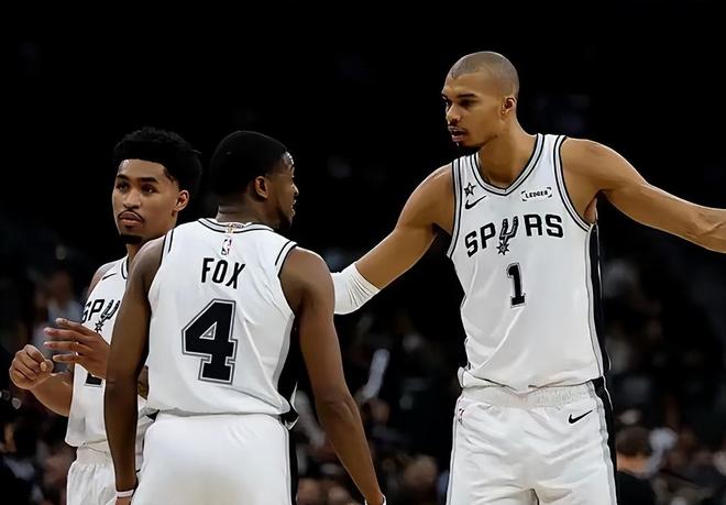 如果说雷霆队的战绩在预期之中,那么马刺队的排名绝对在意料之外!截至目前,马刺队取得了57胜18负的战绩,排在西部第2位,仅落后雷霆队(60胜16负)2.5个胜场,领先西部第3的湖人队(49胜26负)8个胜场!在常规赛还剩7场的情况下,马刺队已经锁定了西部前2,并且保留着冲击西部第1的希望。对于马刺队而言,这样的战绩和排名不值得吹嘘,却来之不易,久违了,所有马刺球迷都可以在黎明破晓之前振臂高呼:圣安东尼奥不相信长夜将至,因为火炬就在文班亚马手中!