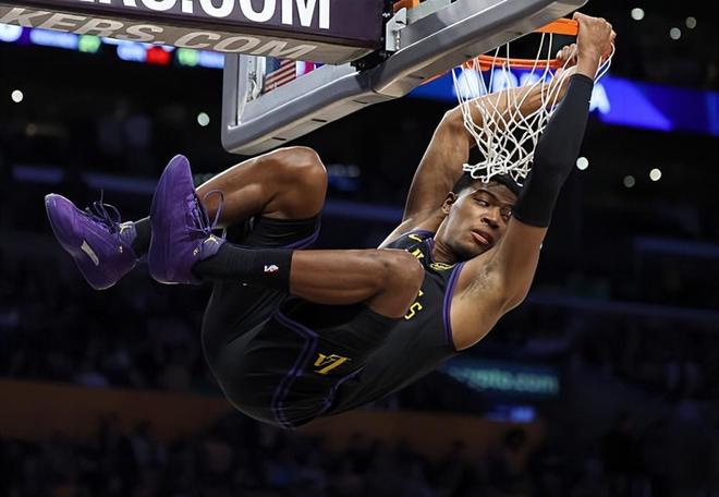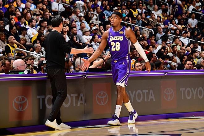 本场比赛中,虽然湖人输掉了比赛,但是不得不进入球队先发阵容的锋线大将八村塁(Rui Hachimura)的表现还是相当不错的。八村塁全场出场39分02秒,投篮13中9,三分线外5中3,以超高的效率得到了21分7篮板1助攻1抢断的数据,还有1次犯规,正负值为+5。八村塁在进攻端展现出了自己超强的得分能力和中远距离投射能力,他也是在出手次数不多的情况下得到了不少分数,起到了很好的效果。除此之外,八村塁在防守端也算是展现出了一定的篮板保护能力,也没有什么太大的问题了。不夸张地说,要不是八村塁拿下了大量的分数,在进攻端打出了超水准的表现,湖人只会输得更惨。