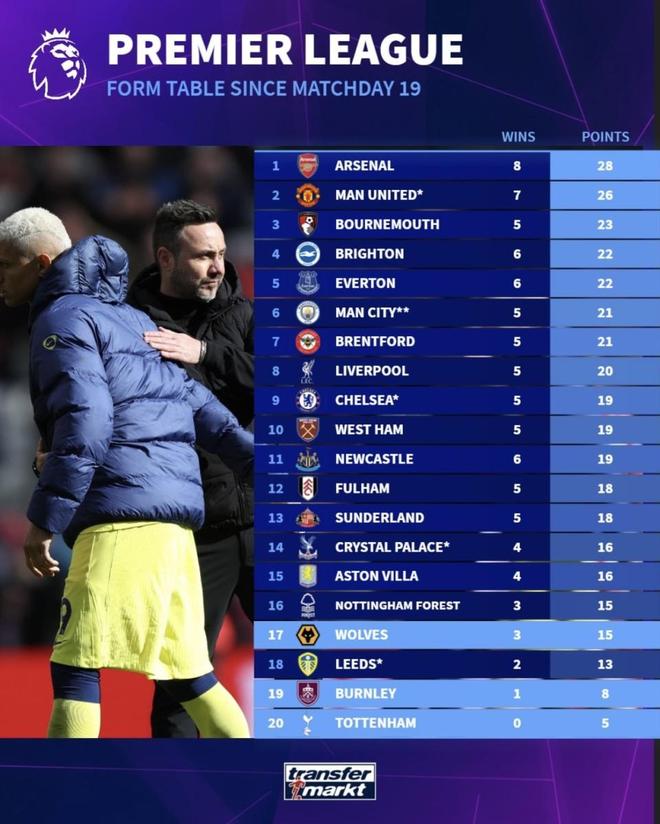 更严重的是,热刺的排名并不是最近才跌下来的。从第19轮之后的阶段积分榜来看,他们只拿到5分,排在20支球队的最后;同期的桑德兰拿了18分,伯恩茅斯拿了23分,连保级圈附近的队伍都比热刺更会拿分。保级拼的就是在这个阶段谁能把分数拿住,过去的实力和名气在现在没有任何作用。热刺后半程连续输球,完全是自己将自己踢到了如今的被动位置。