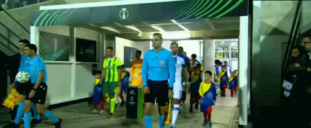 第1分钟,双方球员步入赛场,比赛即将打响