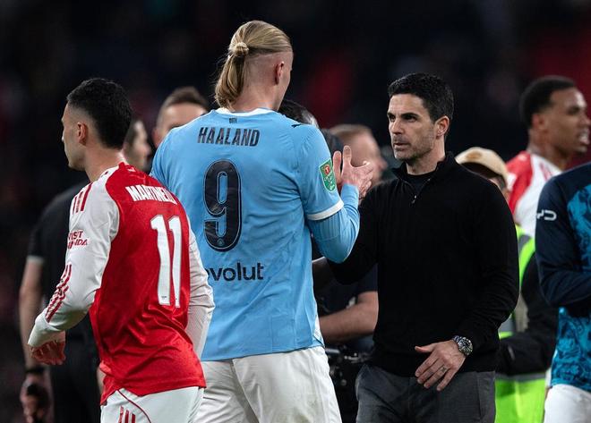 赛后,阿尔特塔带领着阿森纳球员向夺冠的瓜迪奥拉和曼城球员鼓掌致意,然而他的眼中则充满遗憾和失落。